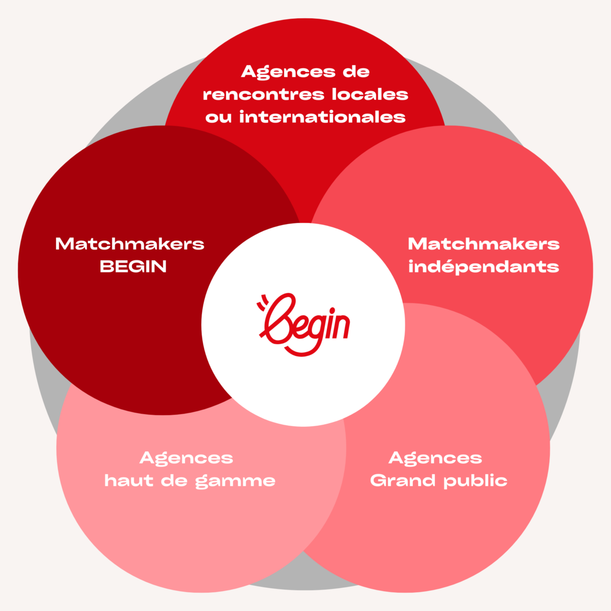 Chez Begin nous sommes persuadés de l’avenir du matchmaking, face à des sites et applications de rencontres qui ont fait leur temps. L’humain, replacé au centre de la rencontre, permettra au plus grand nombre d’y trouver son compte.