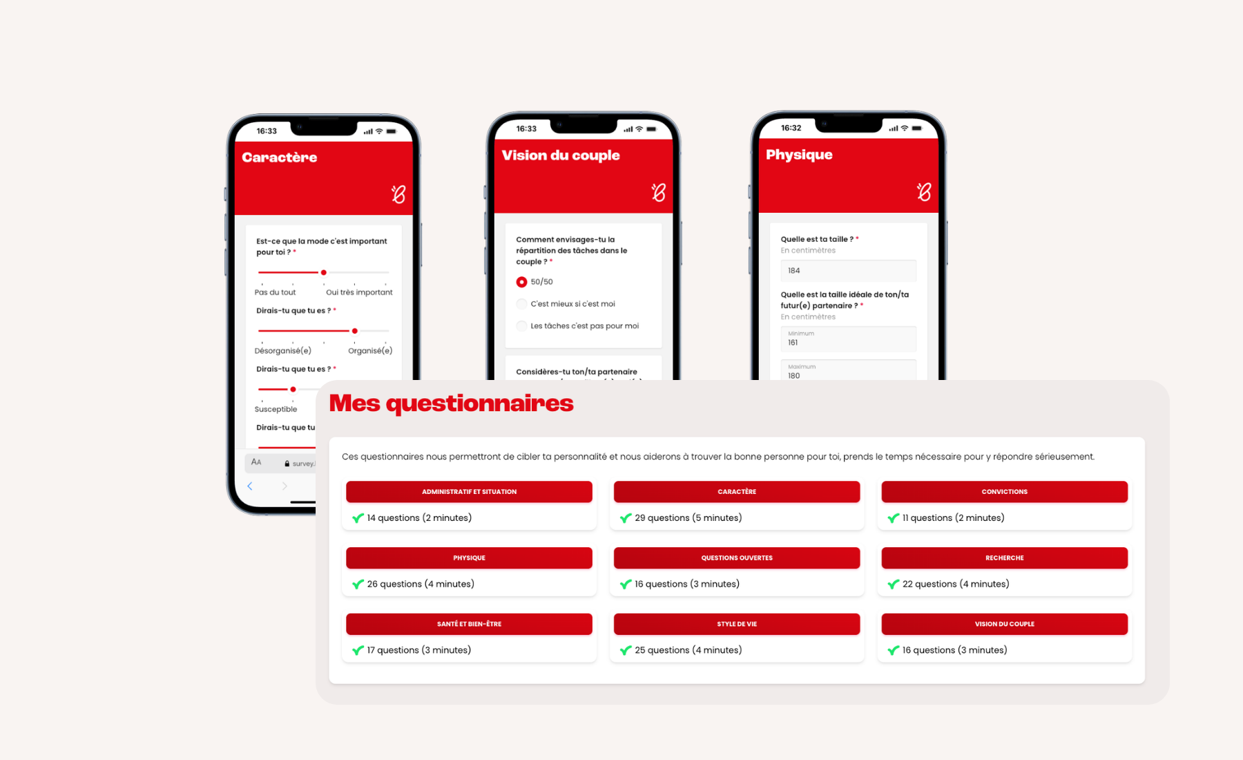 - Temps moyen de réponse : 3 min par questionnaire